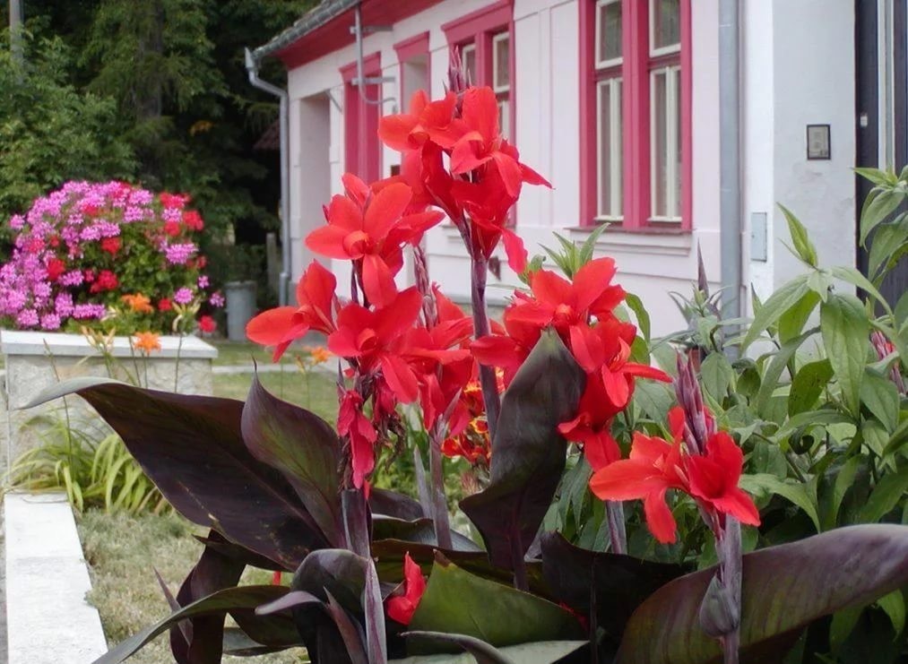 Канна "Америка" станет ярким акцентом в вашем саду, радуя глаз своими крупными цветками и декоративной листвой.