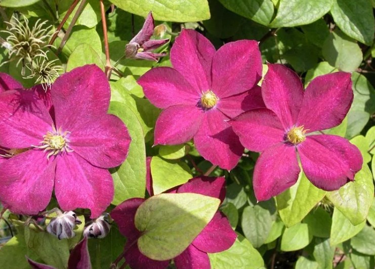 5. Обрезка: Клематис Мадам Эдуард Андре цветет на побегах текущего года, поэтому обрезку следует проводить весной, удаляя слабые и поврежденные побеги.