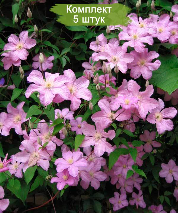 Саженцы клематиса сорта Комтесс де Бушо (Comtesse de Bouchaud) - 5 штук. Прекрасное предложение! Набор из 5 саженцев по цене 4.
