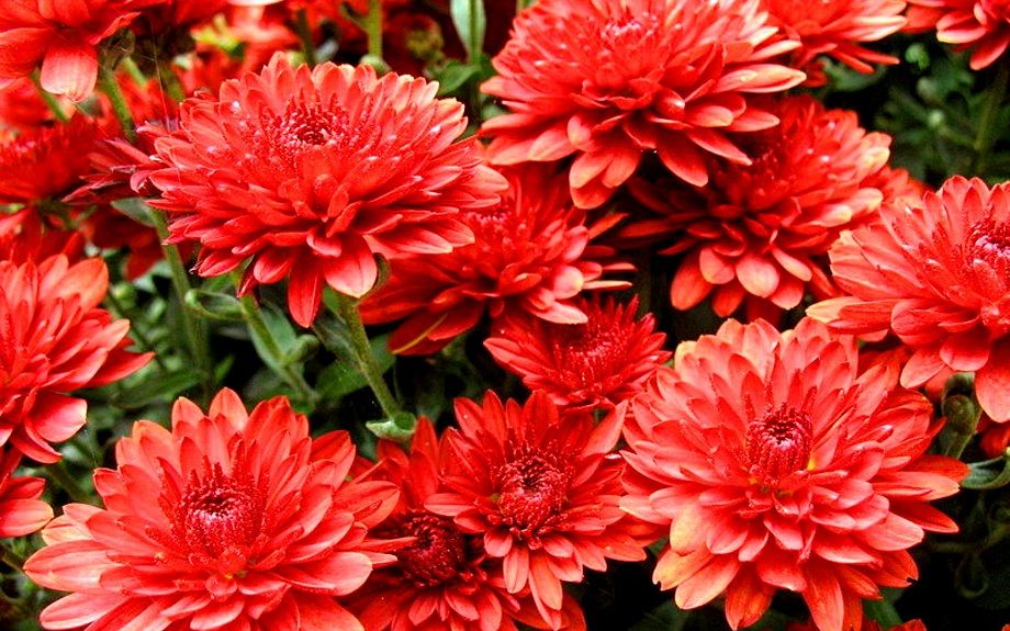 Хризантема мультифлора "Majola" - это корейская хризантема с густомахровыми цветами насыщенного красного оттенка. Растение достигает высоты до 60 см, а диаметр цветков составляет 6-8 см. Прочные и хорошо облиственные цветоносы увенчаны крупными огненно-красными цветами помпонного типа. Цветение начинается в августе и продолжается до сентября, что делает этот сорт идеальным для срезки.