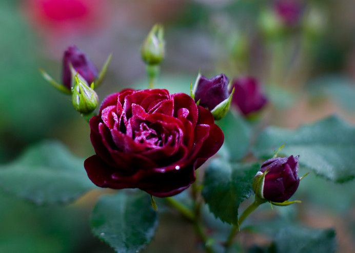 - Насыщенный темно-красный цвет цветков